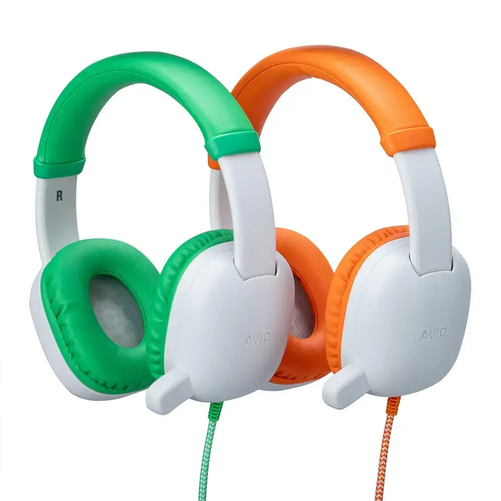 The AVID WonderEars AP-400 is a kid-friendly headset designed for children ages 4–9, combining safety, comfort, and durability. With an 85dB volume limit, the innovative KidCom microphone offers clear voice capture, durability, and distraction-free use, along with soft ear cushions, ensuring a safe and engaging audio experience for young users. Ideal for classrooms, remote learning, and home use, the WonderEars headset supports focus and communication across learning environments. Featuring a 3.5mm TRRS connector, it provides seamless plug-and-play compatibility with Chromebooks, tablets, and laptops. Durable and built to withstand daily use, it features an easy-to-adjust headband and chew-resistant, tangle-free braided cable. Lightweight and easy to clean, the WonderEars is a trusted choice for educators and parents alike.